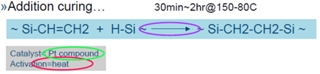 Addition reaction: curing agent and vinyl (-CH=CH-) silicone oil are cross-linked under the action of the platinum catalyst.