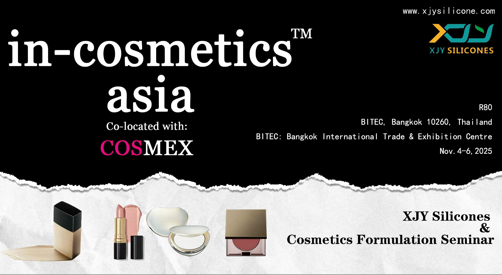 04- 06 Nov, 2025 –Meet with XJY-silicones’s experts at the In-Cosmetics 2025! We will be at booth R80 showcasing our silicone materials innovations, such as silicone resin.